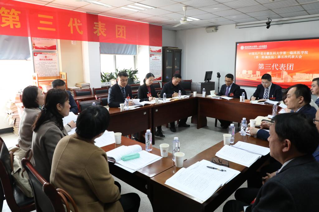 12月30日上午,出席中国共产党安徽医科大学第一临床医学院(第一附属医院)第五次代表大会的代表分成8个代表团,分别讨论审议“两委”工作报告。院领导徐朝阳、孙倍成、李阳新、陈宏凯、戴晓支、李琮、吴晓莉、陈旭林、谢峰、李小虎、刘全礼、丁长明分别参加了所在代表团讨论,听取意见和建议。