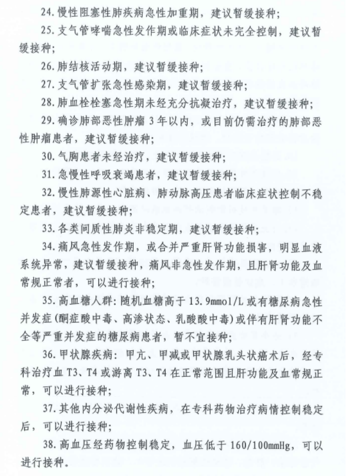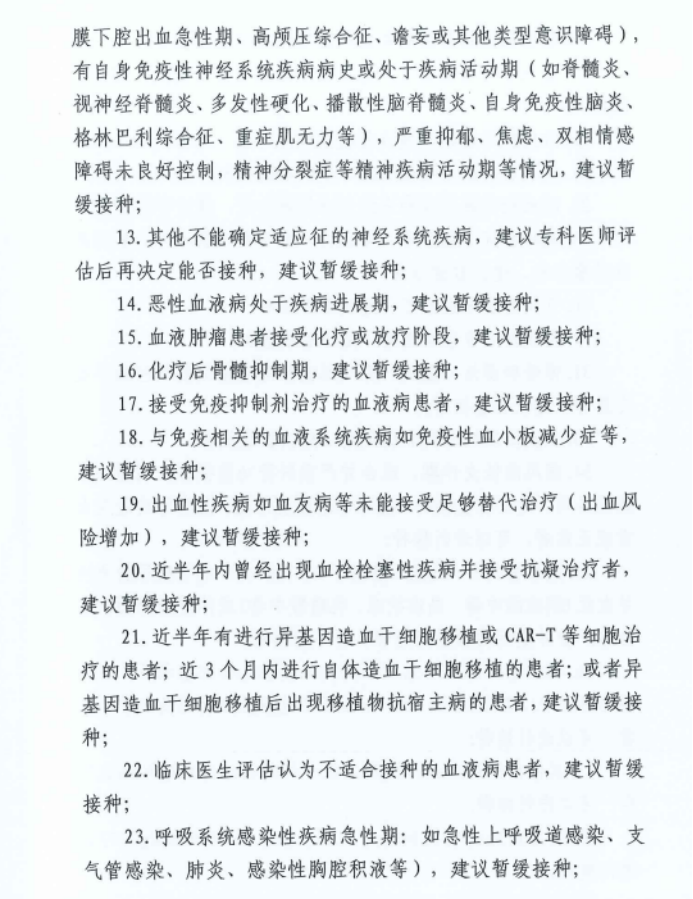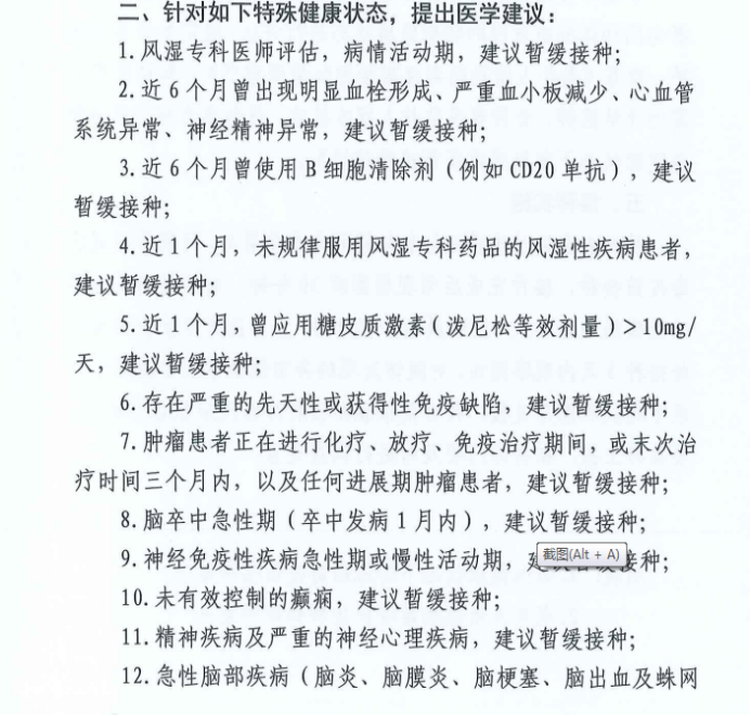 二、暂缓接种疫苗情况:参考省疫防办印发的《特殊健康状态下新冠病毒疫苗接种建议》。