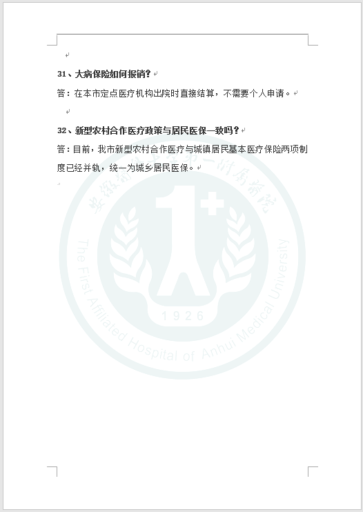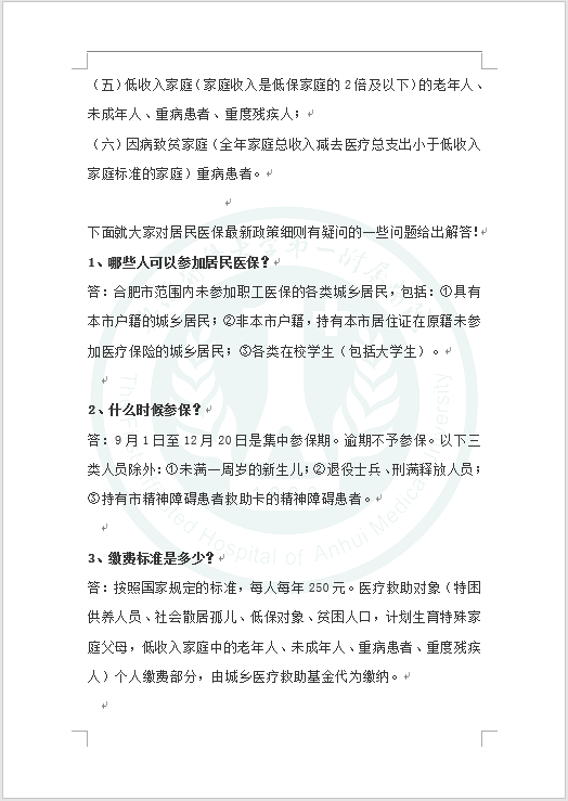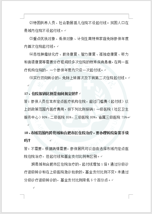 合肥市居民医保政策问答(2020年)