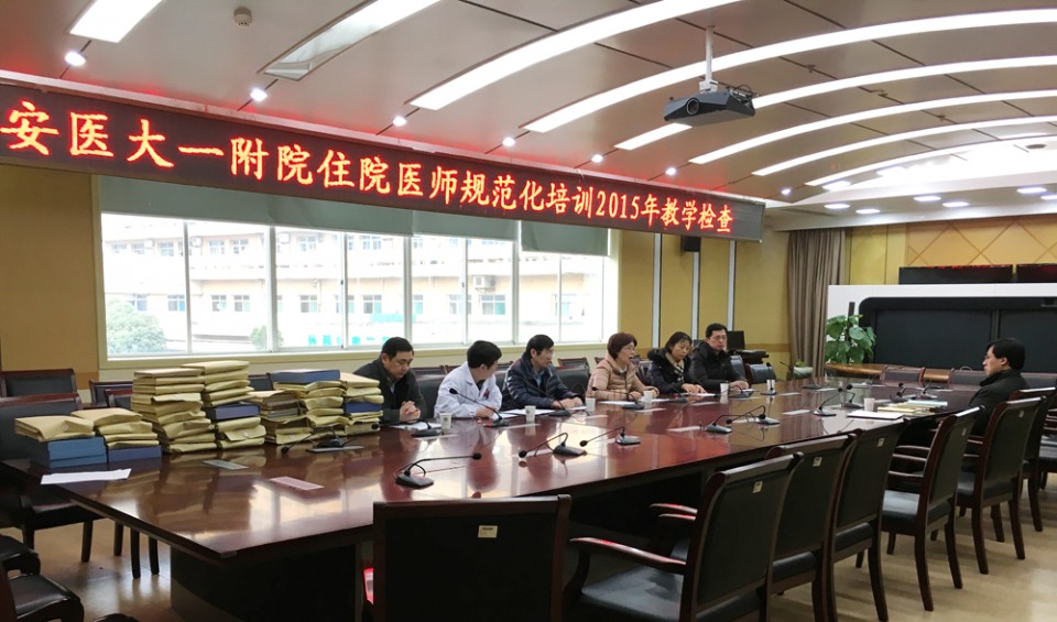 为了进一步规范对住培学员教学的管理,提高教学质量,2016年1月16日,毕业后教育处组织有关专家在干部保健中心二楼会议室对我院各科室住培学员的教学工作进行了督导检查。 王珩副院长在检查中重申了教学的规范和严谨在住培工作中的重要性,毕业后教育处陈旭林处长就住培教学检查的评分标准对各位专家进行了详尽的解读。
