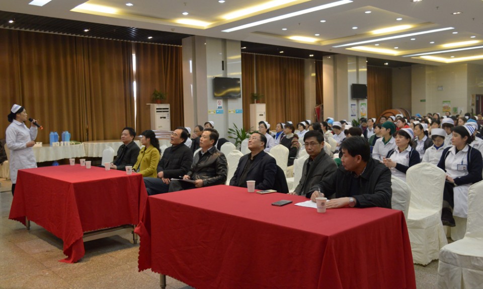 2016年1月14日下午,医院六楼多功能厅会议室,召开了护理骨干赴美国约翰霍普金斯研修学习经验交流会,院领导梁朝朝、余永强、金小干、王润玲、费广鹤、周典、戴晓支出席会议,护理部主任、相关职能部门负责人、全体护士长,以及临床高年资护士参会。