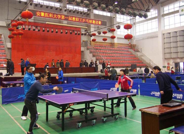 2016年1月9日,由大学承办安徽医科大学第一届教职工乒乓球邀请赛团体赛在校体育馆内顺利结束。经过一番激烈的争夺,我院领导组和职工组皆获二等奖好成绩。本次比赛分为职工团体组和领导团体组,每个团体赛又分为男单、混双、男双、女单等项目为乒乓球爱好者全面提供了展示自己的舞台,参赛选手们都能以饱满的热情和高度的积极性全身心的投入到此次比赛中,并且充分发挥敢打敢拼的拼搏进取精神。