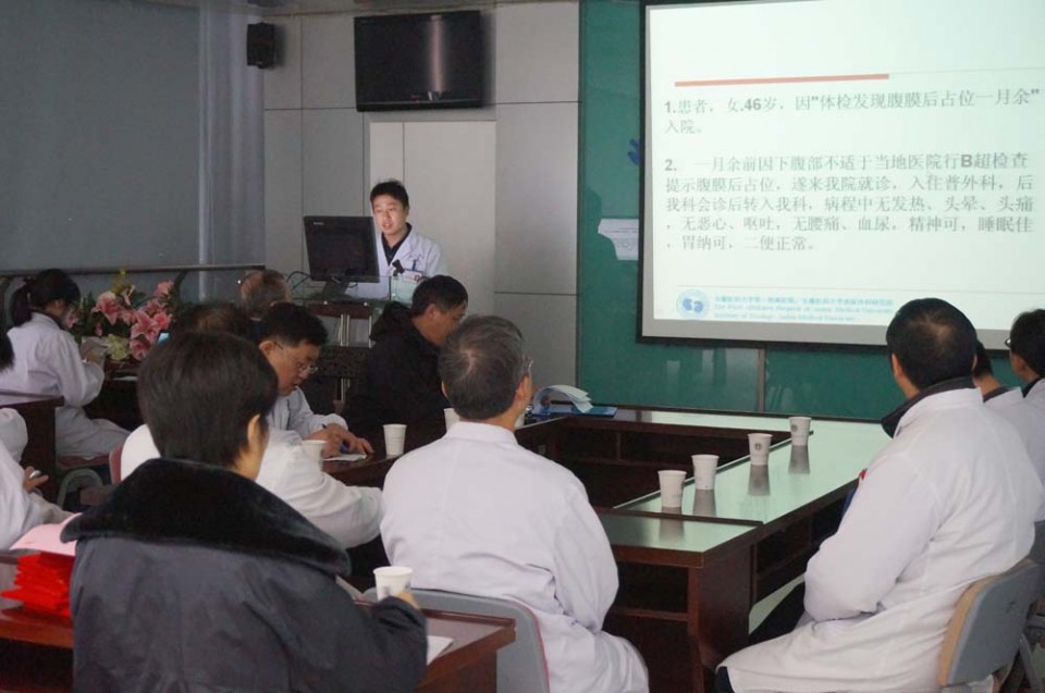 1月14日,泌尿男生殖系肿瘤多学科诊疗(MDT)专家组进行了2016年首次病例讨论。患者为“体检发现腹膜后占位一月余”入院,经多次检查腹膜后肿瘤诊断基本明确,但因侵犯部位导致直接手术的难度加大,风险增高。经泌尿外科、普外科、肿瘤科、放疗科、放射科、磁共振、骨科、消化内科等多学科专家综合讨论,给该患者拟定出一个包含完善检查内容、选择手术方式以及术后放化疗方案的全方位诊疗计划,给患者接下来的治疗提供了指导性意见和建议。在本次诊疗讨论结束后医院为泌尿男生殖系肿瘤多学科诊疗专家组成员颁发了专家聘书。