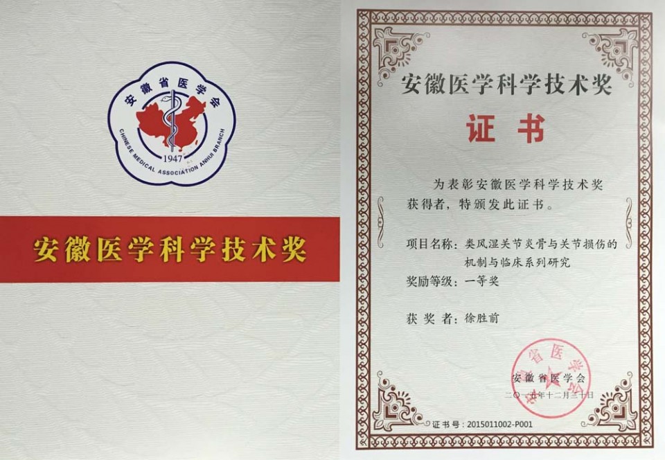 日前,2015年度安徽医学科学技术奖评选揭晓,我院斩获两个一等奖和一个三等奖。其中,泌尿外科梁朝朝教授团队的“前列腺癌的早期诊断及微创治疗技术的应用与推广”和风湿免疫科徐胜前团队的“类风湿关节炎骨与关节损伤的机制与临床系列研究”荣获一等奖。烧伤科徐庆连团队的“Meek植皮技术在大面积深度烧伤中的应用研究”获三等奖。据悉,安徽医学科学技术旨在奖励我省在医学科学技术创新、科技成果转化和推广应用及医学科普作品创作等方面做出贡献的集体和个人。
