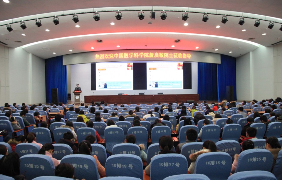 2016年1月16日上午,中国工程院院士、中国医学科学院副院长、北京协和医科大学副校长詹启敏教授受邀来院进行题为《科技创新与医学竞争力》的学术讲座。院长余永强、副院长孙国平出席会议,全院各临床医技科室医护人员、研究生等400余人参加了会议。会议由余永强院长主持。
