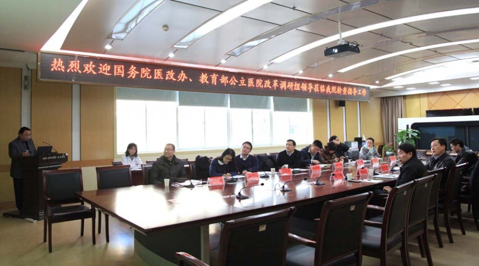 12月15日上午,国家卫生计生委体改司政策组处长朱永峰一行来院,就高校附属医院参与城市公立医院改革情况进行调研,随同调研的有教育部高等教育司、国家卫计委统计信息中心、省卫计委政法处、省医改办有关负责人。党委书记梁朝朝主持会议,院领导班子在院成员及相关职能处室负责人参加调研会。会上,副院长金小干向调研组介绍了医院基本概况、医改工作的落实情况、当前存在的问题和下一步工作安排和建议。表示医院在门诊限时限号、控制药耗占比、加速信息化升级、落实医疗服务价格调整、人事薪酬改革探索、医联体建设等方面做出了积极努力,取得了阶段成效。会上调研组与院方就高校附属医院在进行医改试点过程中的重点和难点举措进行了深入探讨,并对实际工作中遇到的问题提出了意见和建议。