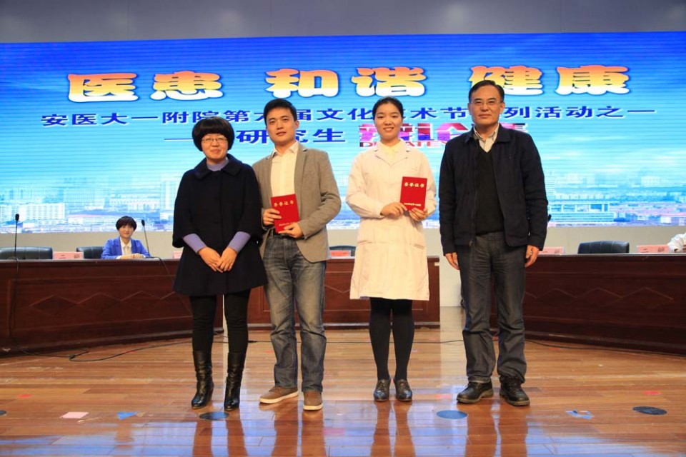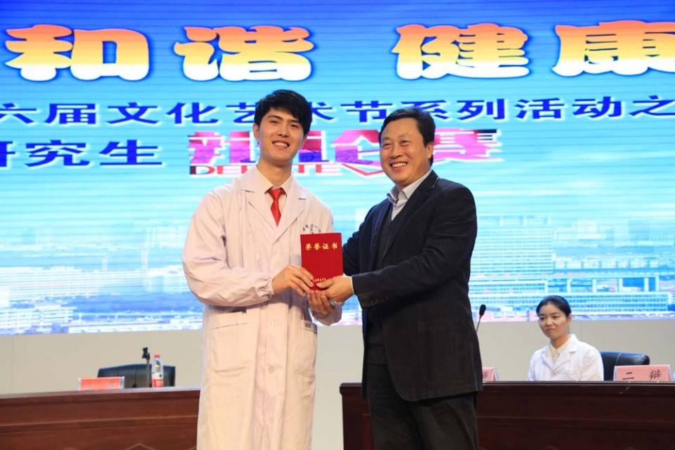 作为医院第六届文化艺术节系列活动之一,为进一步加强研究生医德医风教育,培养其医学人文精神和医患沟通能力,11月20日下午,研究生党总支在医院会议中心举行“医患.和谐.健康”研究生辩论赛。院党委书记梁朝朝、院长余永强、党委副书记戴晓支、副院长孙国平、党委副书记、第一临床医学院学生党总支书记杨秀兰等全程出席了本次活动。同时还邀请了校研究生院党委书记邓廿庆、校马克思主义学院副院长程孝文担任本次辩论赛的评委。