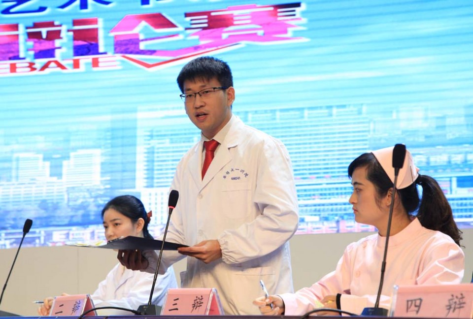 比赛由院团委书记黄尧主持。正方4位辩手分别代表医疗机构的医生、护士和医院管理者,反方4位辩手代表患者、家属、社会人士和新闻媒体;比赛分为双方立论陈述、正反方攻辩、自由辩及结辩陈词四个环节;在立论陈述环节中,正反双方就“构建和谐医患关系.谁的责任更大”这一主题进行立论陈述;在攻辩和自由辩环节双方辩手你来我往、见招拆招,精彩纷呈、火花四溅,不时博得现场的阵阵掌声;在最后的结辩环节,正反方各抒己见,对本方观点进行了慷概激昂的总结陈词;比赛在热烈的掌声中圆满结束。