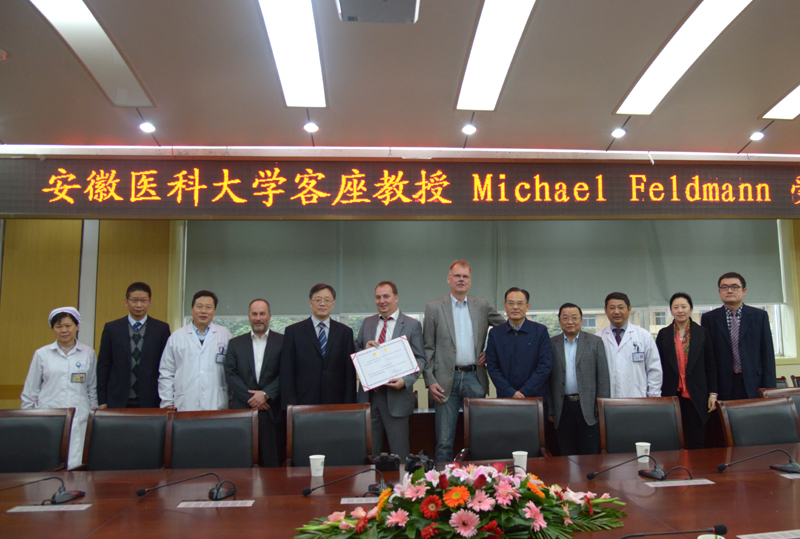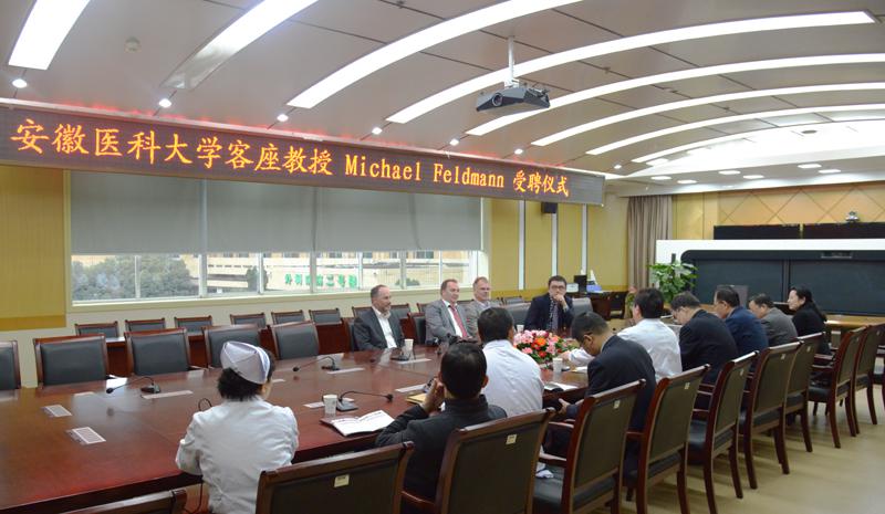 11月11日上午,我院在干部楼二楼会议室举办聘任仪式,聘任德国汉堡大学Michael Feldmann教授为我院客座教授。大学党委书记李俊、我院党委书记梁朝朝、院长余永强、副院长金小干出席会议,校、院人事处、血管外科相关负责人参加聘任仪式,会议由党委书记梁朝朝主持。聘任仪式上,院长余永强对Michael Feldmann教授的到来表示欢迎,并简要回顾了医院的发展历程。大学党委书记李俊向Michael Feldmann教授发放聘书。最后,Michael Feldmann教授表示非常珍惜此次合作机会,在今后的工作中将与我院互相学习、共同进步。