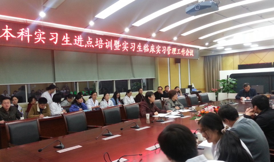 11月18日晚,教育处召开“2012级本科实习生进点培训暨实习生临床实习管理工作会议”。副院长王珩、教育处处长张泓、内外妇儿及检验诊断学教研室主任,各学科临床教学秘书以及教育处相关工作人员50余人参加了会议。会议由副院长王珩主持。 会议对将于12月份正式进入临床实习阶段的2012级本科生实习进行部署,将安排内、外、妇、儿、急救及检验诊断学主要临床技能的岗前培训,会上就培训内容和培训师资征求各教研室主任意见。