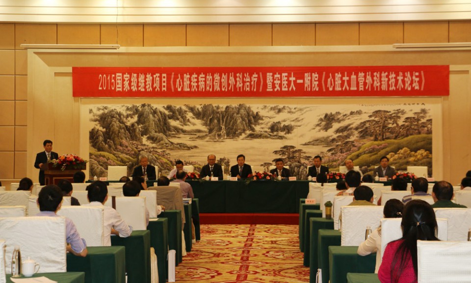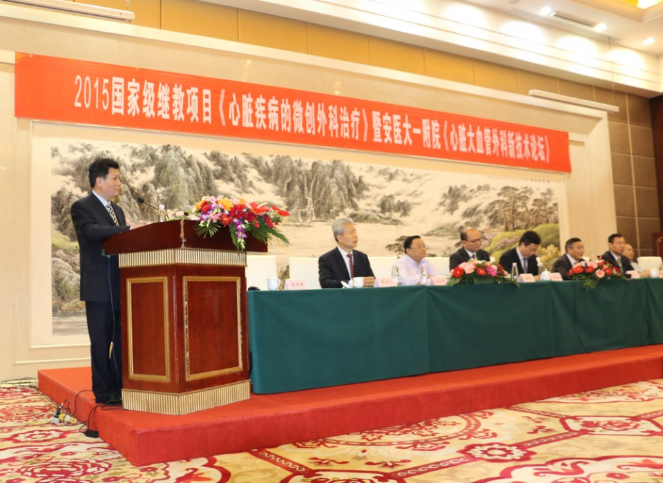2015年10月17日—19日,由我院心脏大血管外科一病区主办的2015国家级继教项目“心脏疾病的微创外科治疗”暨安徽医科大学第一附属医院“心脏大血管外科新技术论坛”在合肥举行。院党委书记梁朝朝、副院长金小干出席会议并发表讲话,来自美国的国际著名心脏病学专家及省内近百名心脏大血管病专家出席会议。