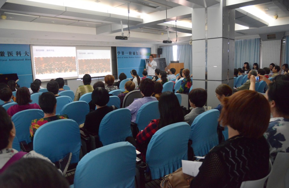 2015年10月16日下午,由我院干部肿瘤科主办的第四届“情系粉红丝带,关爱女性健康”大型公益活动在实验中心楼六楼学术报告厅举办,也是“粉红人生乳腺病友俱乐部”的活动日,来自全省各地的百余名患者及家属参与了本次活动。