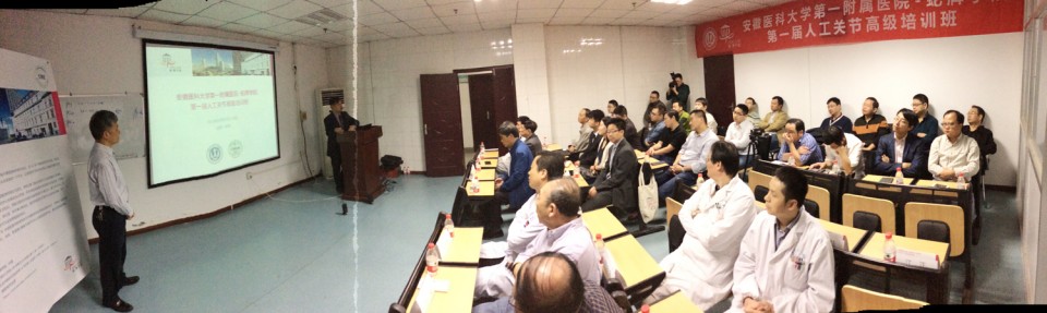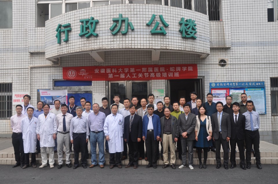 10月23-24日, 安徽医科大学第一附属医院-蛇牌学院第一届人工关节高级培训班在肥召开,该系列学习班由我院关节外科中心发起并主办,旨在对全省各地骨科医生进行关节手术的标准化操作培训。院党委书记梁朝朝教授、中华医学会骨科学分会副主任委员、关节学组组长王坤正教授、安徽省医学会骨科分会主任委员孔荣教授出席会议并讲话。培训班由我院关节外科中心主任尹宗生教授主持。