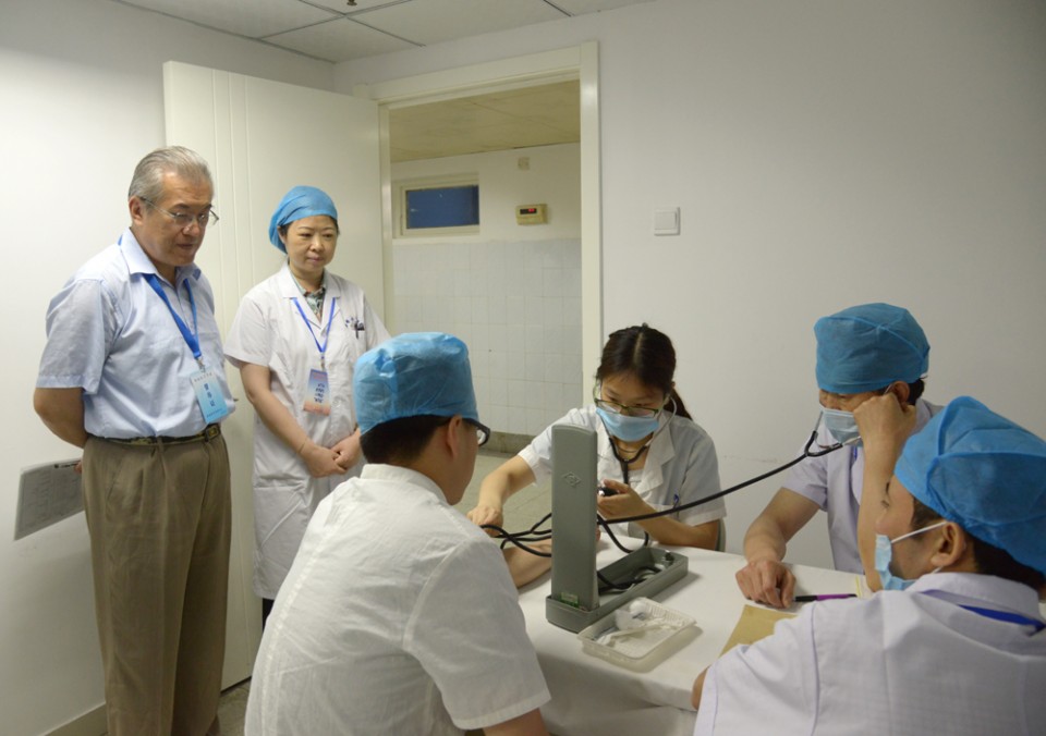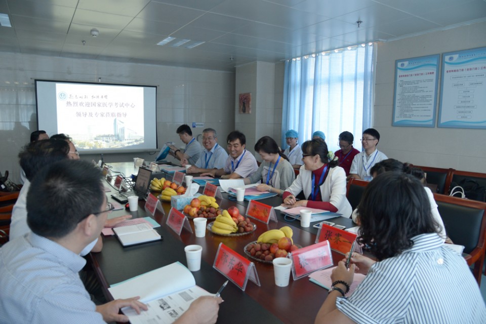 7月7日上午,国家医考中心副主任王县成带领的专家组一行,在省卫计委医政医管处领导阮浩等陪同下来到我院长江路门诊部,评审我院申报的口腔类别国家医师资格实践技能考试与考官培训基地,院长余永强、副院长金小干及相关职能处室负责人全程陪同了评审。院长余永强致欢迎辞并向专家组汇报了我院口腔类别执业医师实践技能考试基地建设、考官培训及考务管理情况。随后,专家组分为三组,分别深入考站考评考官的执考水准、考务管理等,并与考生进行交流,对我院口腔类别执业医师实践技能考试情况进行多维度评价。