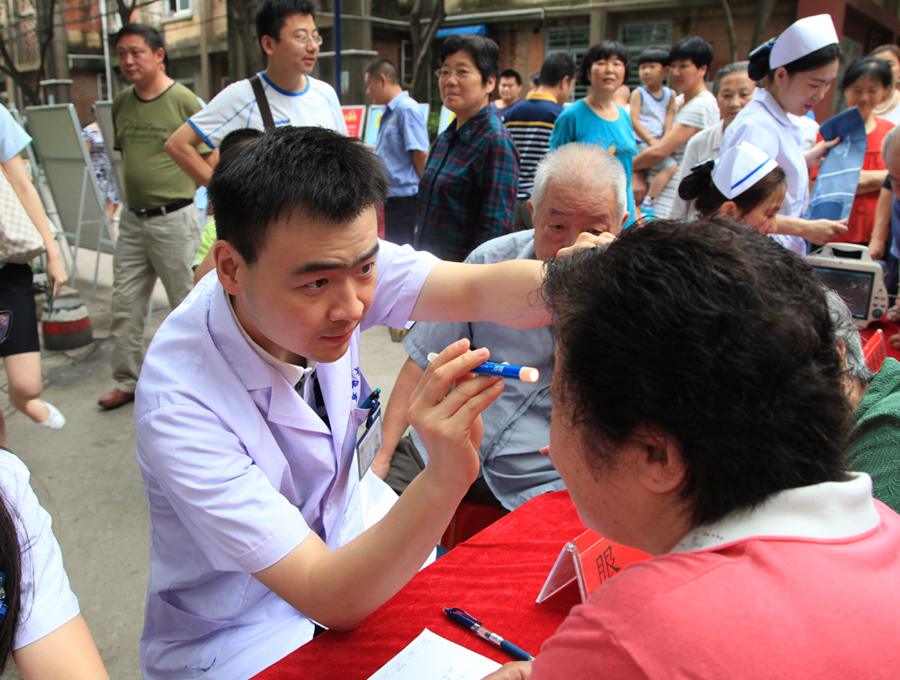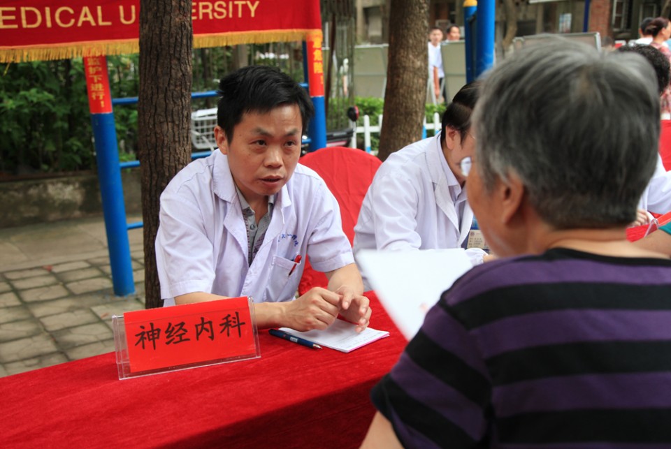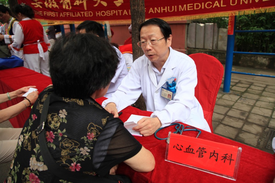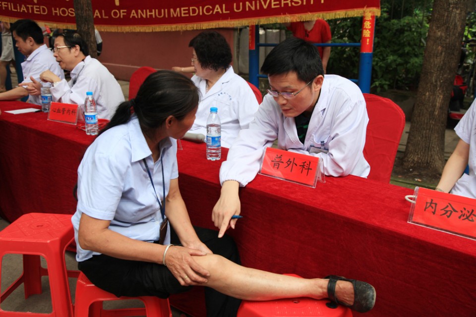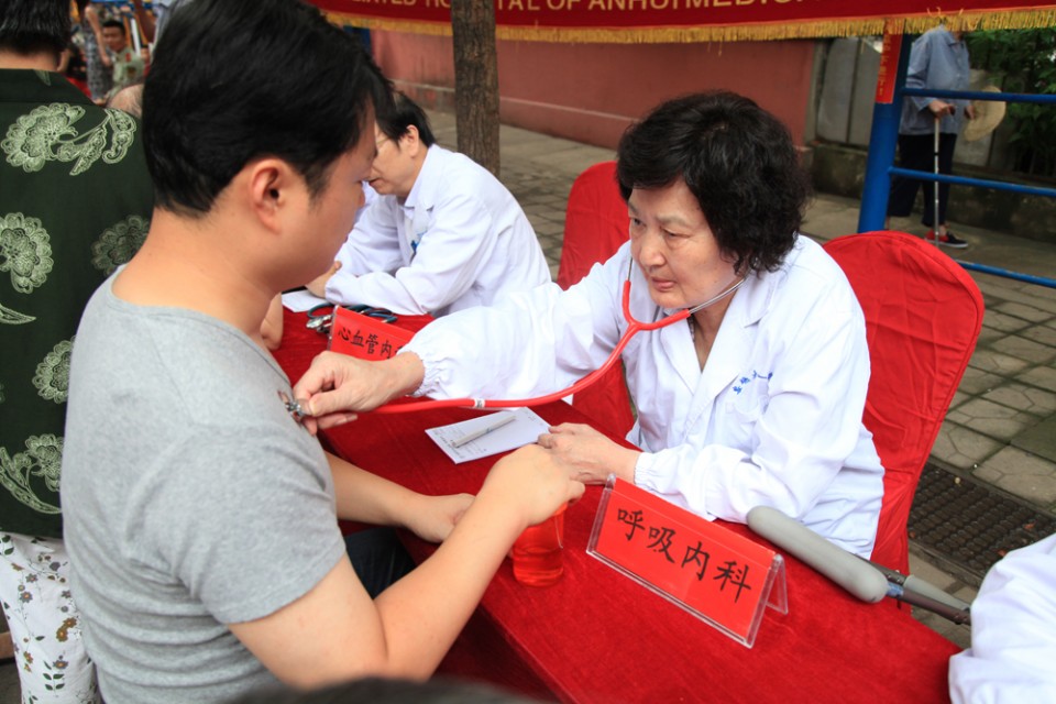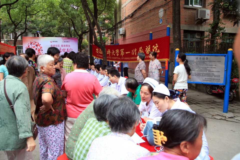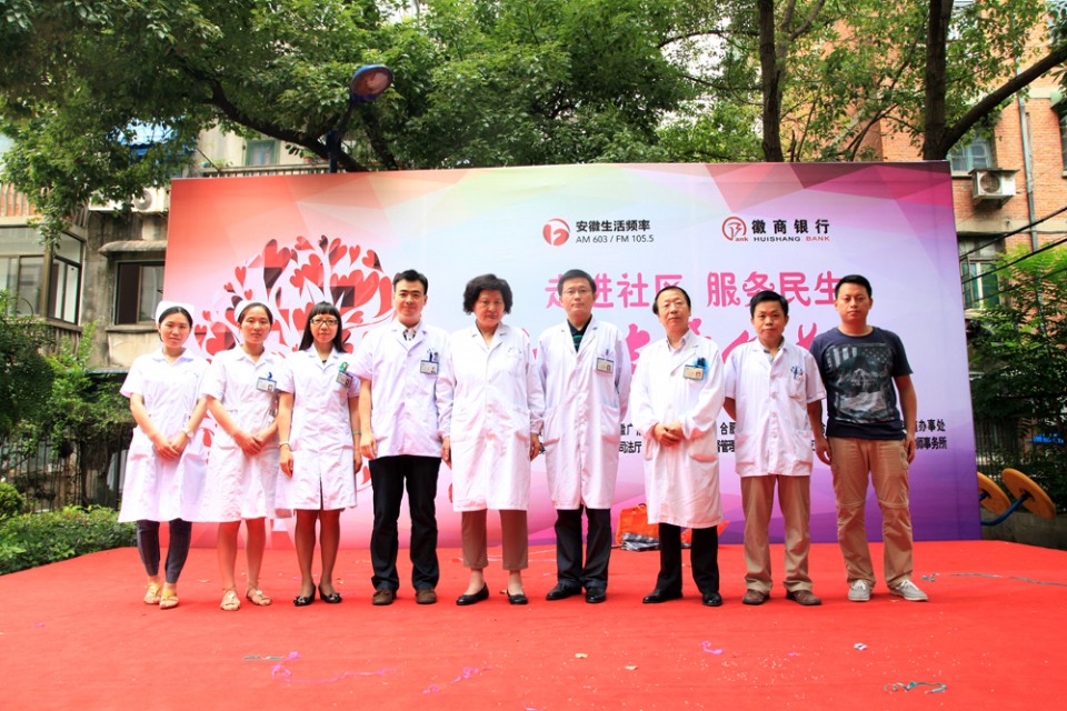 7月11日上午,我院与安徽广播电视台生活广播联合举办的2015“走进社区服务民生”大型公益活动来到了庐阳区,在省政府宿舍大院火热举行。由院党委工作部、干部保健办组织的来自心血管内科、神经内科、普外科、内分泌科、呼吸内科、眼科的专家为附近居民带来了免费的检查诊治、健康咨询等服务。在两个半小时的时间里,专家们认真接受居民的咨询,耐心解答市民的疑问,共接待就诊及血压测量等四百余人次,受到居民的热烈欢迎。