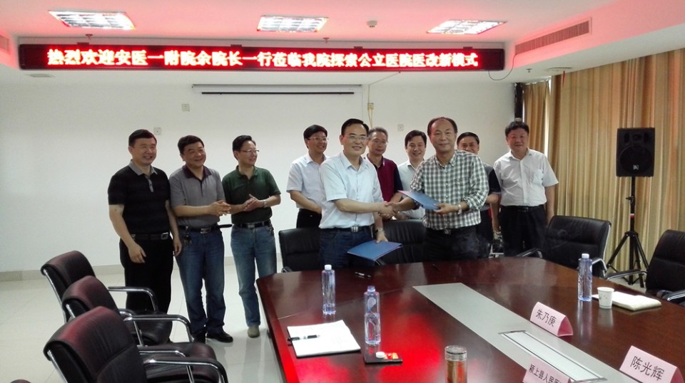 5月28日下午,院长余永强、副院长费广鹤分别带领医务处、院办、事业拓展部、信息中心和医保办等部门负责人赴颍上县人民医院、肥西县人民医院洽淡医联体合作事宜。两家县医院院领导及相关职能部门负责人出席对接会议。