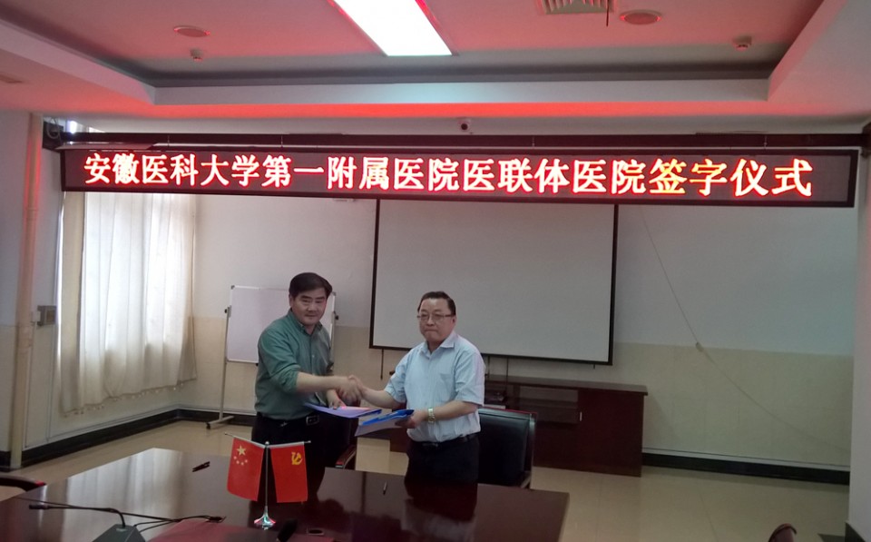 为贯彻落实国家医改精神,深化公立医院改革,进一步做好分级诊疗工作,确保优质医疗资源下沉基层,根据《安徽省深化医药卫生体制综合改革试点方案》(皖政〔2015〕16号)文件要求,4月24日至5月8日,院党委书记梁朝朝和副院长金小干先后带领党委工作部、医务处、事业拓展部、医保办、信息中心等职能部门负责人赴临泉县人民医院、阜阳市第七人民医院、桐城市人民医院、舒城县人民医院、岳西县医院以及蜀山区洽谈医联体建设工作,并签定了初步框架协议。