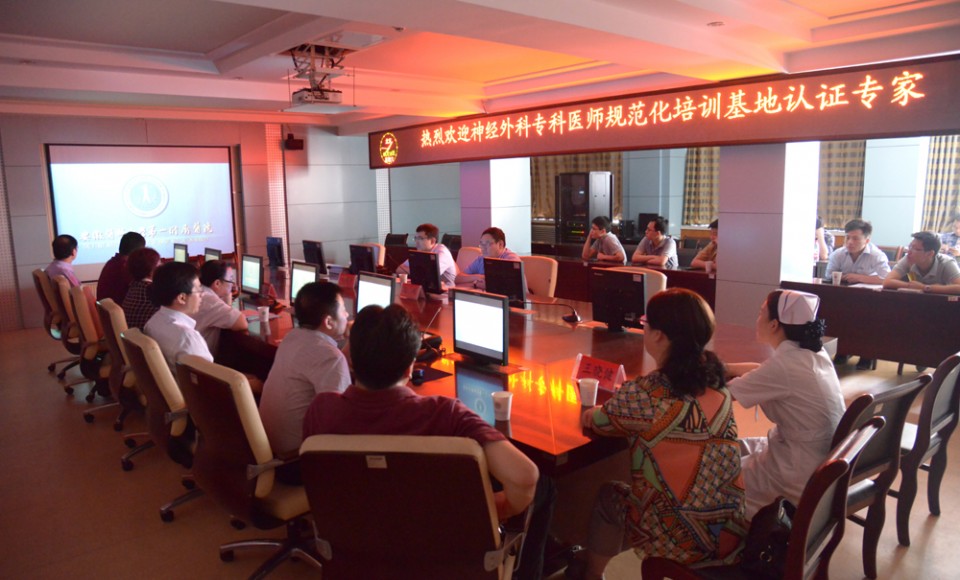 5月16日,受中国神经外科医师协会委派,著名神经外科专家、吉林大学第一附属医院神经外科赵刚教授,哈尔滨医科大学第一附属医院神经外科刘耀华教授一行在医院副院长金小干、副院长王珩、教育处副处长陈旭林和神经外科冯春国主任、徐培坤主任、张晓东主任、王晓健主任等多名专家教授的陪同下,对我院神经外科进行专科医师规范化培训基地认证考察工作。考察期间,金小干副院长详细介绍了我院和神经外科的基本情况,并指出作为安徽省重要的神经外科诊治中心,入围首轮专科医师培训基地认证既是对我院神经外科工作的肯定,同时也是我院神经外科发展的一个契机,医院希望神经外科能以这次专科基地认证为契机,抓住机遇,让科室的业务水平和影响力再上新台阶。随后,神经外科冯春国主任、徐培坤主任、张晓东主任、王晓健主任等向专家组详细汇报了神经外科近年来在医、教、研等方面的发展和取得的各项成果,并陪同专家现场考察了脑胶质瘤多学科会诊中心等,认证专家对我院神经外科的神经外科规模、师资、设备设施条件和技术水平等均表示了充分肯定。