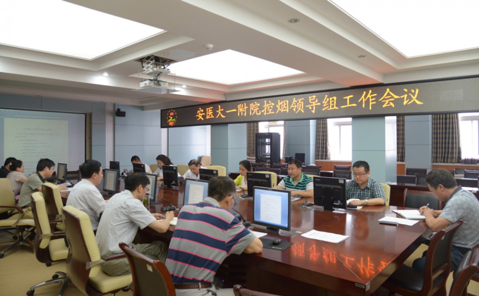 5月26日上午,医院控烟工作领导组在行政楼第二会议室召开“第28个世界无烟日”活动专题会议,会议由控烟领导组组长周典副院长主持,领导组和办公室全体成员参会。会上首先学习了关于开展第28个世界无烟日暨健康中国行——2015年度无烟生活主题宣传教育活动的通知(国卫办宣传函【2015】436号文件)。周典副院长在会上总结了前一阶段我院的控烟工作,并就5月31日第28个无烟日我院准备开展的活动进行了详细布置,要求相关部门各负其责、互相协作,按照文件要求和工作布置认真做好相关工作,完成义诊咨询、宣传培训、巡查控烟等任务。