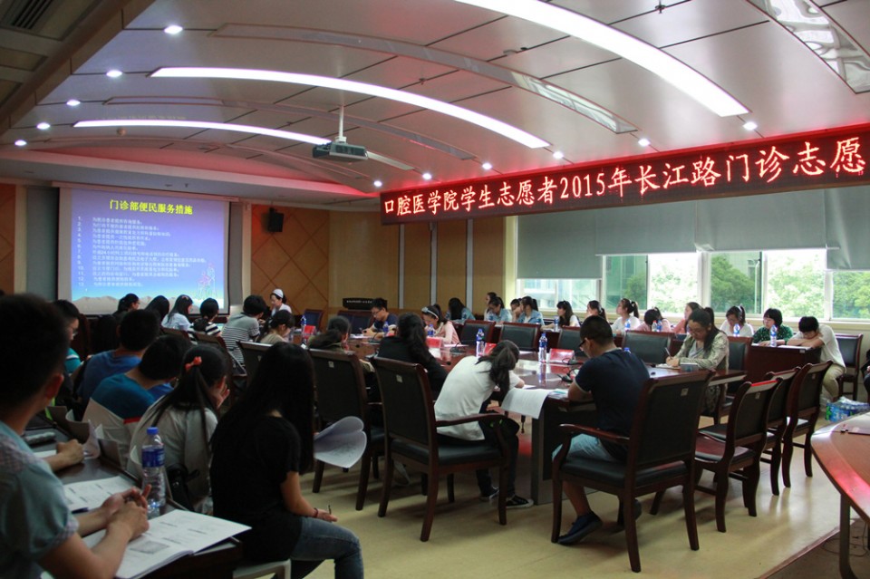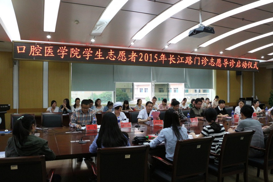 5月7日,医院在干部二楼会议室召开2015年学生志愿者长江路门诊导诊启动仪式。院党委副书记戴晓支、口腔医学院党总支副书记陈然到会并讲话,一附院门诊部主任李维荣等出席,院团委全体委员及口腔医学院辅导员、学生志愿者参加启动仪式。仪式由院团委书记黄尧主持。