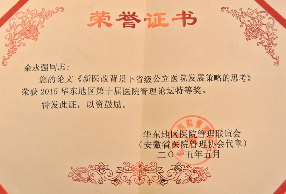 会议以医院改革与管理为主题,与会者在会上交流了华东地区医院管理的学术成就与工作经验。论坛共评选出特等奖论文3篇,一等奖论文14篇,二等奖论文42篇,三等奖论文85篇,余永强院长的论文《新医改背景下省级公立医院改革发展策略的思考》荣获特等奖。