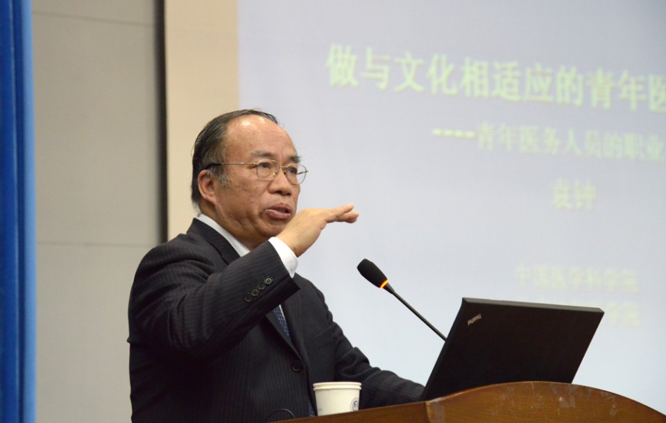 2015年4月3日下午,医院在内科医技楼会议中心举行“人文安医大讲堂”系列讲座。邀请中国协和医科大学出版社社长袁钟教授做了题为《做与文化相适应的青年医务工作者》的专题讲座,讲座由党委书记梁朝朝主持。整个讲座以文化为主线,袁钟教授用了近三个小时的时间引经据典系统介绍了文化,包括中国传统文化、民族文化等,强调培养有知识、有文化的医务工作者,推动医学从生物医学模式向心理-社会-医学模式转变。