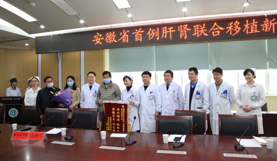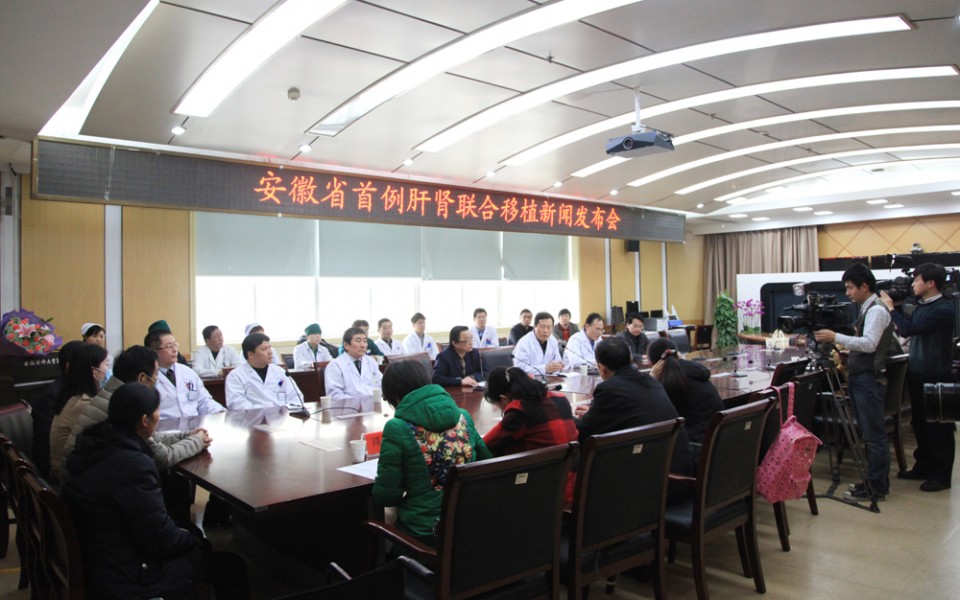 3月9日,医院在干部二楼会议室召开了“安徽省首例肝肾联合移植新闻发布会”,新华社、健康报、安徽日报、安徽人民广播电台、安徽电视台等国家及省市十余家新闻媒体的记者参加了本次发布会。院党委书记梁朝朝、院长余永强、省人体器官捐献管理办公室副主任姚卫东及相关科室、职能处室负责人出席了发布会。发布会由副院长金小干主持。