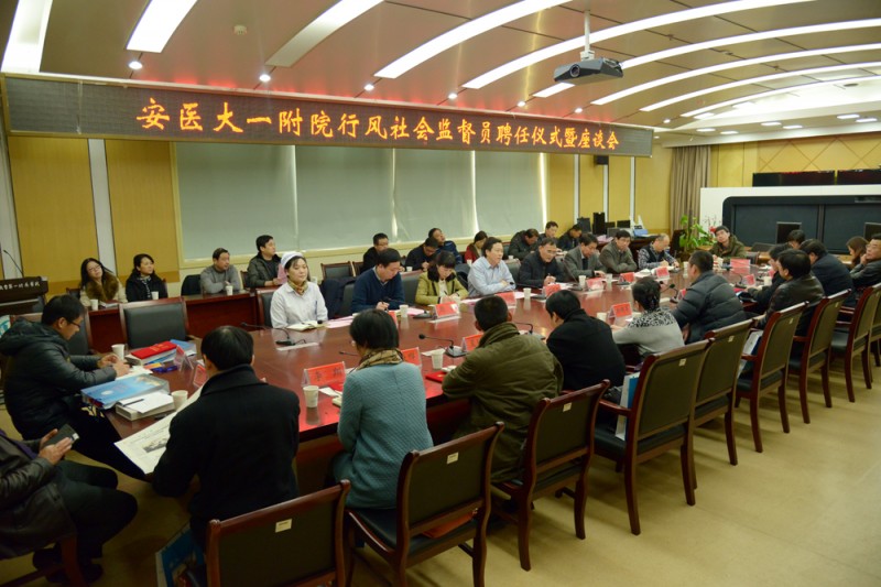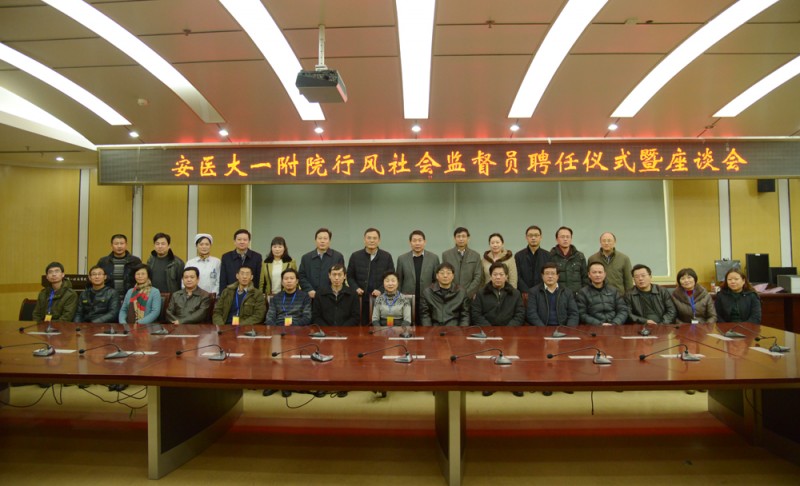 为进一步加强医院行业作风建设,新年伊始,医院在干部保健中心二楼会议室召开第七届行风建设社会监督员聘任仪式暨座谈会。在院院领导梁朝朝、余永强、王润玲、费广鹤、周典、戴晓支、党委委员李伦兰和部分职能处室负责人及来自社会各界的15位行风社会监督员参加了座谈。座谈会由纪委书记王润玲主持。