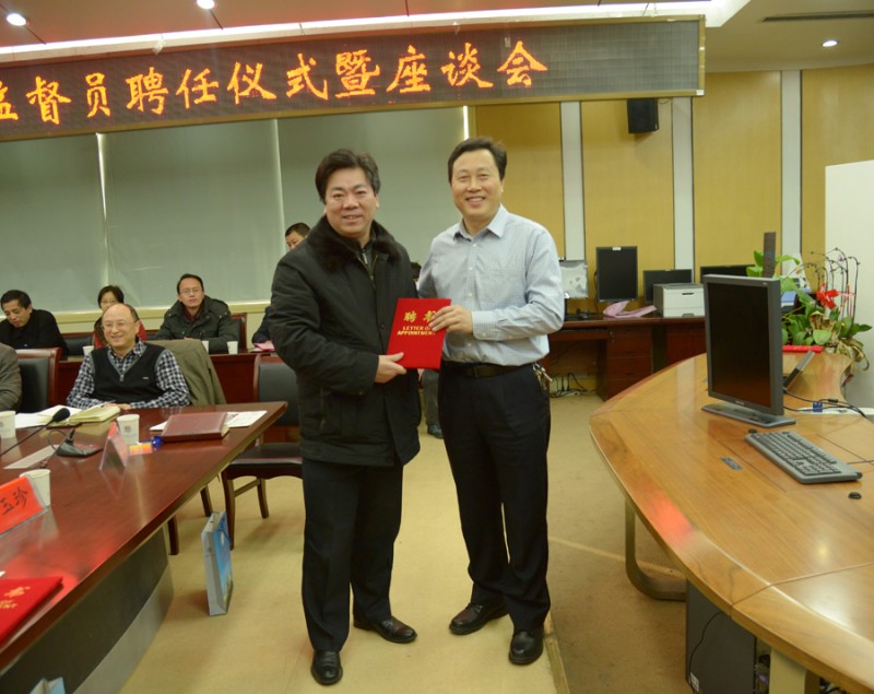 座谈会上,党委书记梁朝朝和院长余永强分别为新一届行风社会监督员发放了聘书。