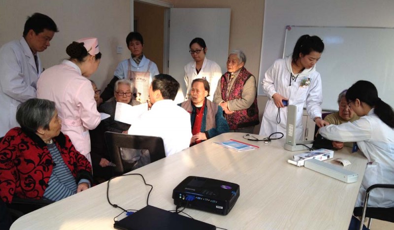 11月12日下午,医院科研处与全科医学教研室带领内、外、妇、儿等学科的22名研究生来到合肥市庐阳区老年之家,开展研究生“走进社区,服务老人”的健康宣教和义诊服务。此项活动也是安医大第四届“研究生学术文化季”的活动内容之一。在社区老年之家,同学们在老师的带领下耐心细致地为60多位老人进行健康体检以及高血液、糖尿病等多种疾病的健康宣教和诊疗服务,认真了解老年人的健康与心理状态,耐心地向他们讲解老年保健和养生常识。活动深受老人们的欢迎,同时也受到了正在走访调研的庐阳区政府领导的高度认可和称赞,表示希望安医大的专家及研究生把到社区送医服务这项活动经常性地开展下去。