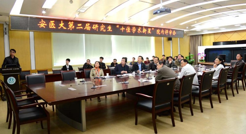 11月13日下午,医院科研处在干二会议室举行了研究生“学术新星”院内评选会,院党委书记梁朝朝教授、院长余永强教授出席会议,会议由孙国平副院长主持。评选会上,来自内、外、妇、儿等学科的6名博士、13名硕士研究生进行了每人5分钟的PPT演讲,展示了个人风采和综合学术水平。在的精彩演讲中,同学们向与会评委汇报了他们的学习、学术研究等多方面成果,同时也彰显了我院研究生严谨求实、协同创新的学术精神。评委们针对选手的演讲内容或学术问题提出宝贵的建议和具体的指导意见,最终根据申请材料和演讲效果给予综合评价,评选出11名优秀选手代表我院参加安医大“十佳学术新星”的评比。