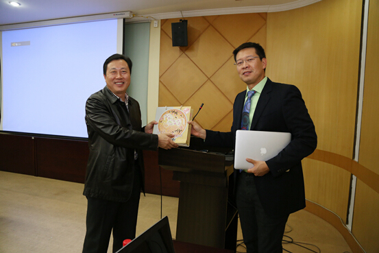 首先,梁朝朝教授对于Jim Hu教授来我院进行学术交流表示热烈的欢迎,同时介绍了我院自9月底率先在省内引进并开展了达芬奇机器人手术,并已经完成了38例,其中泌尿外科完成了13例。随后Jim Hu教授结合自己近几年在美国多家医学中心进行机器人手术的经验及体会,进行了约两小时的学术报告。特别对在机器人腹腔镜下根治性前列腺切除术中对神经血管术、背深静脉复合体、膀胱颈部的处理提出了很多新的观点及手术技巧;同时对机器人腹腔镜下肾门处肾占位的肾部分切除术,巨大肾肿瘤根治性切除、下腔静脉癌栓取栓术结合相关的手术视频进行了精彩的讲解。学术报告后Jim Hu在泌尿外科相关人员的陪同下参观了我院泌尿外科病房、研究所,对我院泌尿外科近几年的发展情况也给予了高度评价。