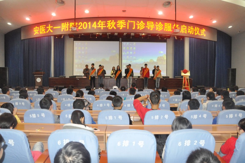 11月3日下午,一附院2014年度秋季门诊志愿导诊服务暨第一临床医学院“爱心驿站”志愿服务启动仪式在会议中心举行。院领导戴晓支、杨秀兰出席启动仪式,仪式由院团委书记黄尧主持。第一临床医学院2013级700余名学生及辅导员老师、一附院团委委员共同参加了启动仪式。