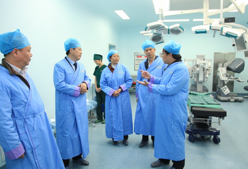 11月4日下午,国家卫计委规划与信息司司长侯岩、基础设备处处长吴翔天、省卫计委副主任高俊文等一行赴我院参观调研机器人手术开展情况。侯岩司长获悉我院手术机器人设备到院后连夜完成安装,并在次日成功完成全省首台机器人手术后,高度肯定了这一“安医速度”。侯岩司长表示,希望医院充分发挥先进设备的优势,为人民群众提供更多优质的医疗服务。