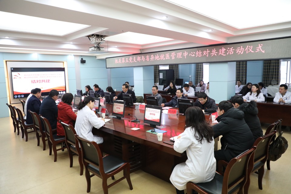 为深入贯彻习近平新时代中国特色社会主义思想和党的十九大精神,加强新时代基层党支部建设,创新基层党组织活动载体,激发党建队伍活力。1月15日上午,我院机关总支第五党支部与省医保局异地就医管理中心党支部签约结对共建协议。院党委书记金宗祥、副院长周典、机关总支书记张惠如出席协议签署活动,第五党支部和省医保局异地就医管理中心全体党员参加。