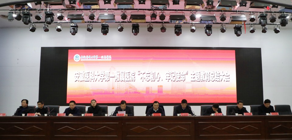 张伯根在讲话中指出,在全党开展“不忘初心、牢记使命”主题教育,是以习近平同志为核心的党中央统揽伟大斗争、伟大工程、伟大事业、伟大梦想作出的重大部署。主题教育开展以来,安医大一附院党委深入学习贯彻习近平新时代中国特色社会主义思想,严格按照“十二字”总要求,紧紧围绕“五句话”目标,一体落实四项重点措施,规定动作务实严谨,自选动作特色鲜明,做到了组织领导坚强有力,理论武装扎实深入,整改落实加快推进,干事创业奋发有为。
