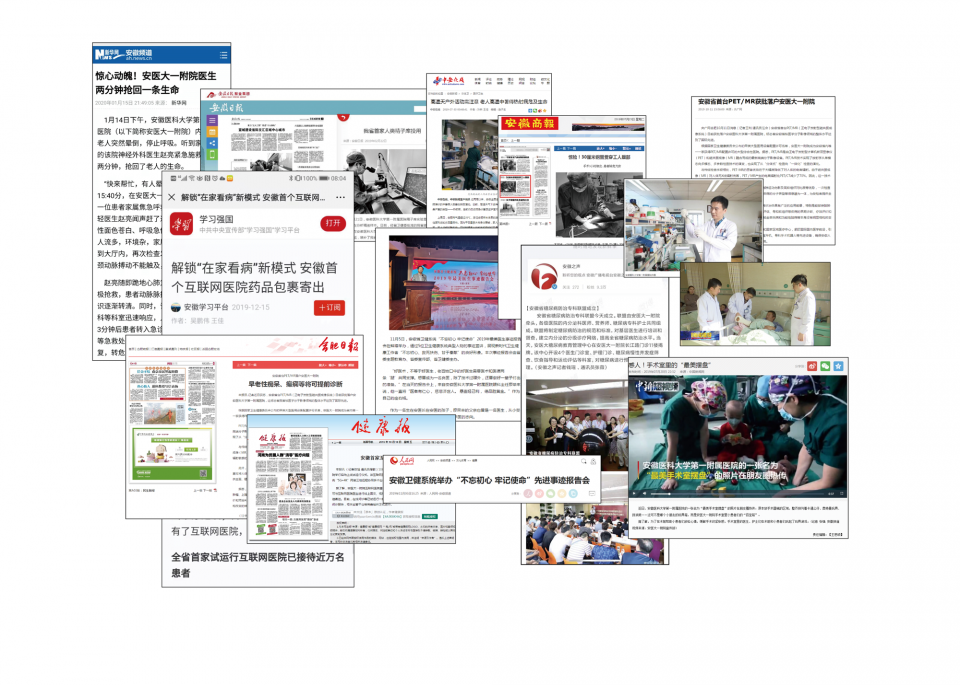 【编者按】2019年是新中国成立70周年,也是医院内迁安徽70周年。这一年,医院大事要事多,好事喜事多。学习强国、人民日报、新华社、中央人民广播电台、健康报、安徽日报等中央省市级媒体集中聚焦医院改革发展所取得的成绩,累计刊发各类正面报道近千篇次,实现电视、广播、报纸、网络、两微一端等平台矩阵全覆盖,图文、短视频、电子海报等传播手段相融合,持续增亮“创新”“温暖”等安医名片,医院影响力、知名度、美誉度不断提升。