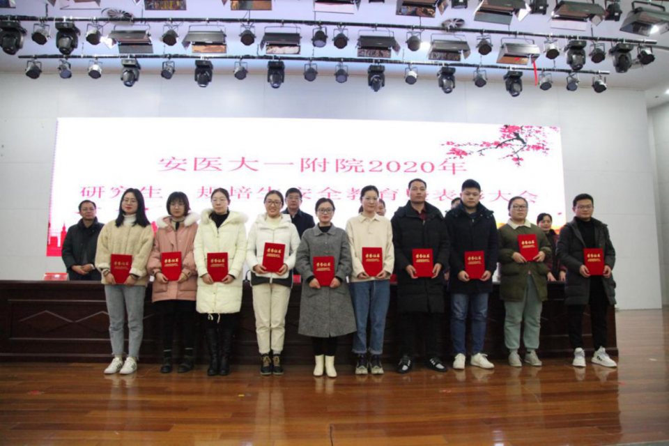 1月19日下午,医院在会议中心召开全院研究生、规培生安全教育暨表彰大会。党委书记金宗祥、副院长费广鹤、副院长王珩出席会议,党委副书记戴晓支主持会议。