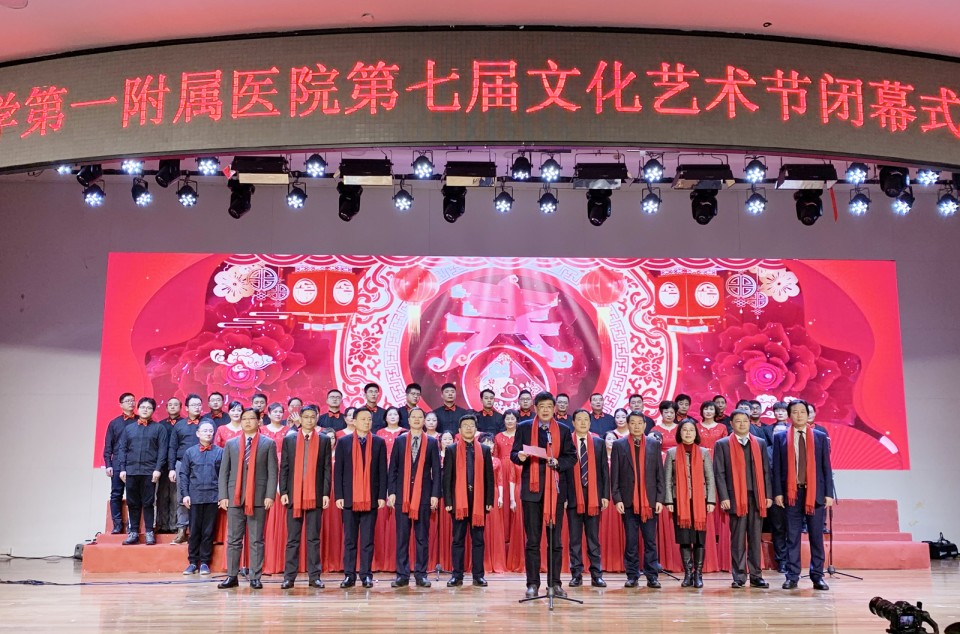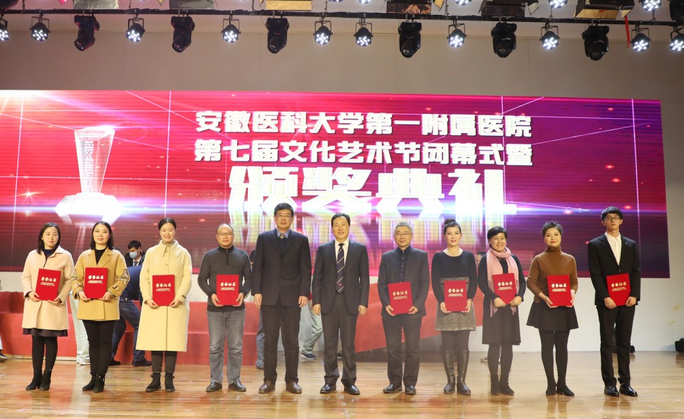 颁奖典礼最后,全体院领导上台,向全院医护员工拜年,感谢大家这一年来的辛勤奉献和取得的成绩。祝大家新春愉快,阖家欢乐!