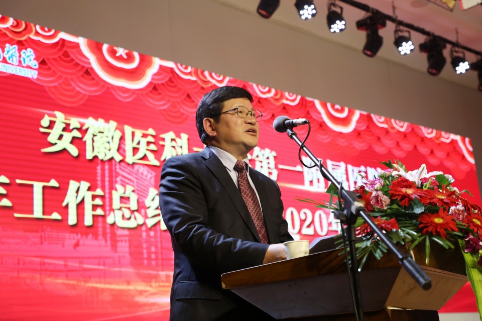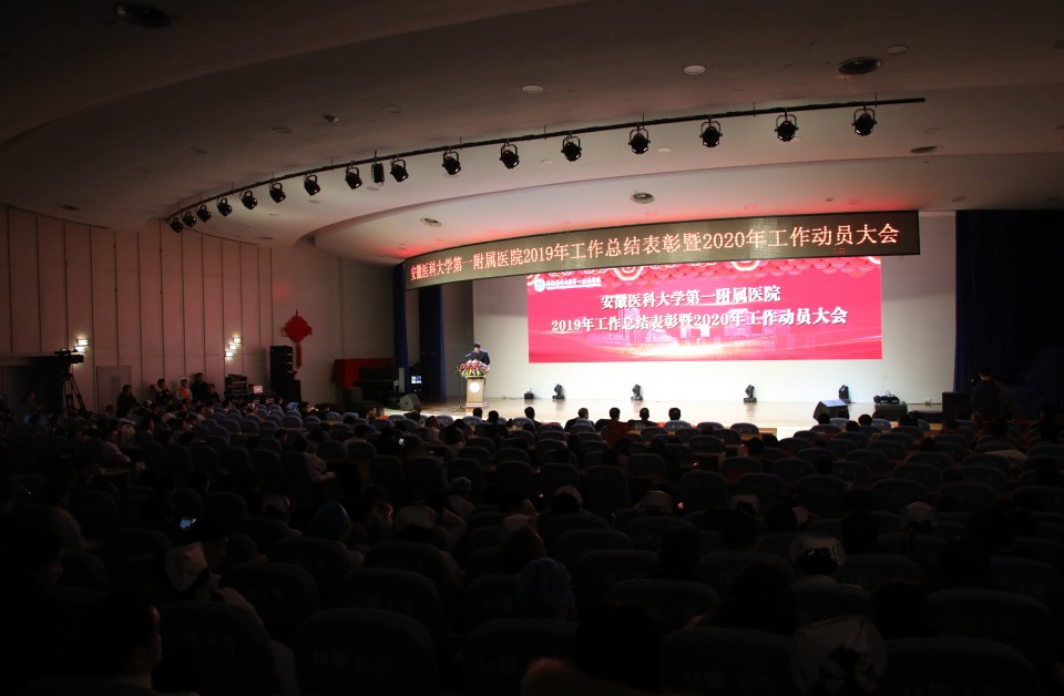 1月22日下午,医院在会议中心召开2019年工作总结表彰暨2020年工作动员大会。校党委书记顾家山出席会议并讲话,院党委书记金宗祥主持会议,院长梁朝朝作总结和动员报告,常务副院长李家斌宣读医院表彰决定。医院领导班子全体成员、科级及以上干部、党支部书记,临床医技科室、教研室、研究所和病区负责人,护士长,院职代会委员、市级以上人大代表和政协委员、民主党派安医大基层组织主要负责人、职代会代表等参加了会议。