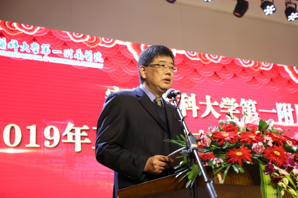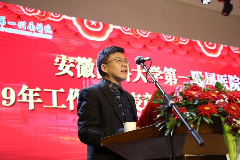 校党委书记顾家山代表校党委行政对我院2019年工作进行了高度评价,他指出,2019年,在一附院党政领导班子的正确带领下,在全院师生医护员工的共同努力下,医院在创建国家区域医疗中心和国家区域医学中心方面取得了显著成果,综合实力稳居安徽省首位,各项事业得到新的发展。学校党委和行政对一附院一年来的发展速度、发展质量、发展状态是充分肯定的。