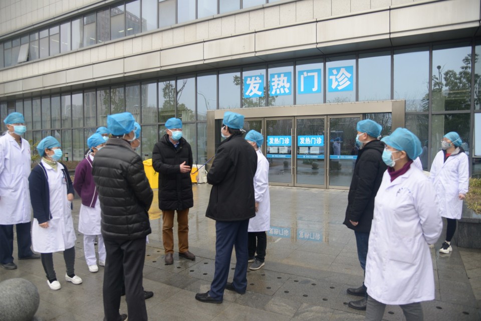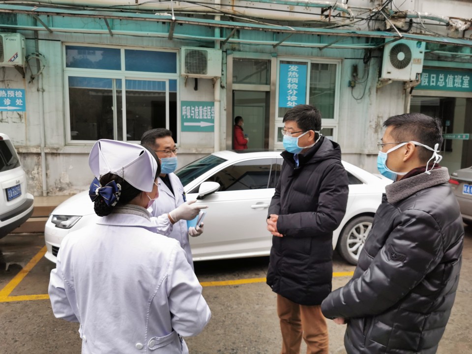 1月23日上午,院领导金宗祥、梁朝朝、李家斌、费广鹤、戴晓支、孙国平等分赴绩溪路门诊、长江路门诊、高新院区,督导检查新型冠状病毒感染的肺炎疫情防控工作落实情况,实地查看了急诊接诊、预检分诊、发热门诊和隔离观察室等,向奋战在防控第一线的医务人员表示慰问和感谢,要求相关部门严格落实各项要求,全力做好应急保障工作,坚决打赢疫情防控战。