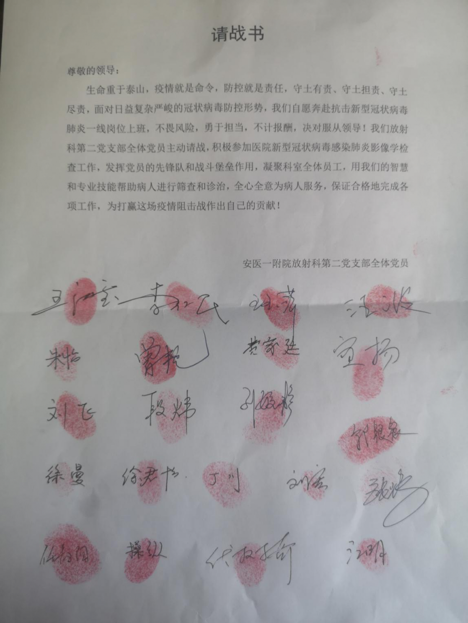 初一一早,放射科及党支部全体成员全部就位,设置专用发热机房,配套防护物资。技术员、医师、护士纷纷请缨,要求为发热病人做检查,他们中有的是工作了二三十年的老党员,有的是年轻党员,有的还是预备党员、积极分子,但疫情发生以来,他们的心里最大的是疫情,最重要的是患者。