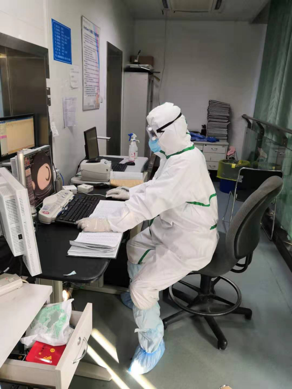 “为了节约时间,也为了节约一次性的防护服,大家宁愿不吃饭、不喝水,也坚守着岗位,从来没有一个人叫苦叫累,充分展现了我们党支部的战斗堡垒作用和党员的先锋模范作用。”放射科第一党支部书记柏亚说。