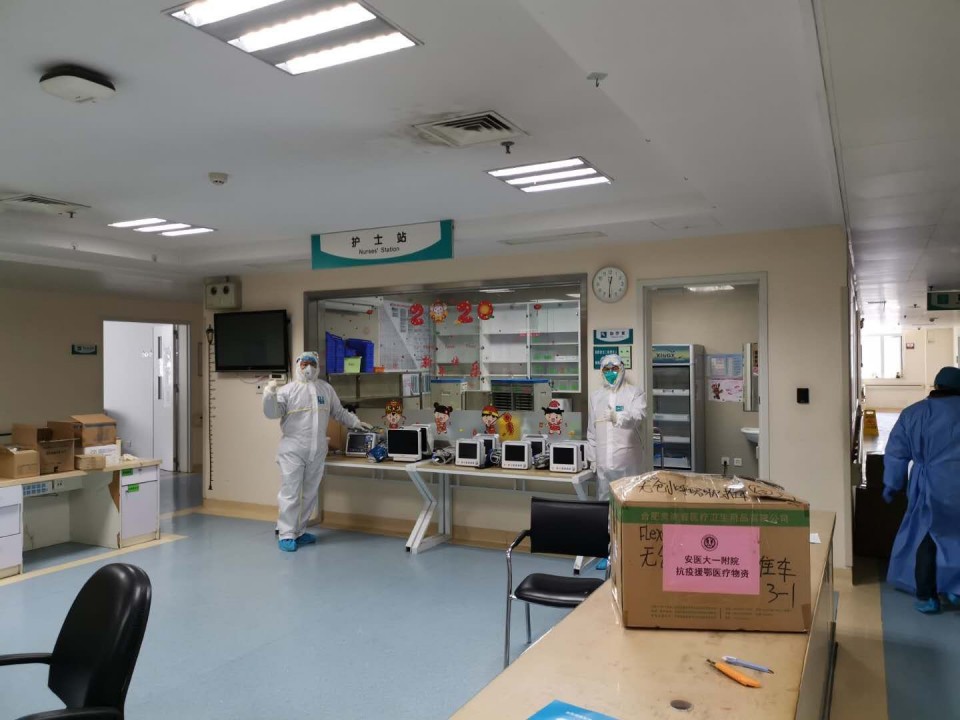 医院第五批支援湖北医疗队整建制接管武汉华中科技大学同济医学院附属协和肿瘤中心集中收治新冠肺炎重型患者病房,于2月15日10点,开科收治病人,上午11点17分,收治第一位新冠肺炎患者,是安徽省第一批进入隔离病房开科收病人的医疗队。