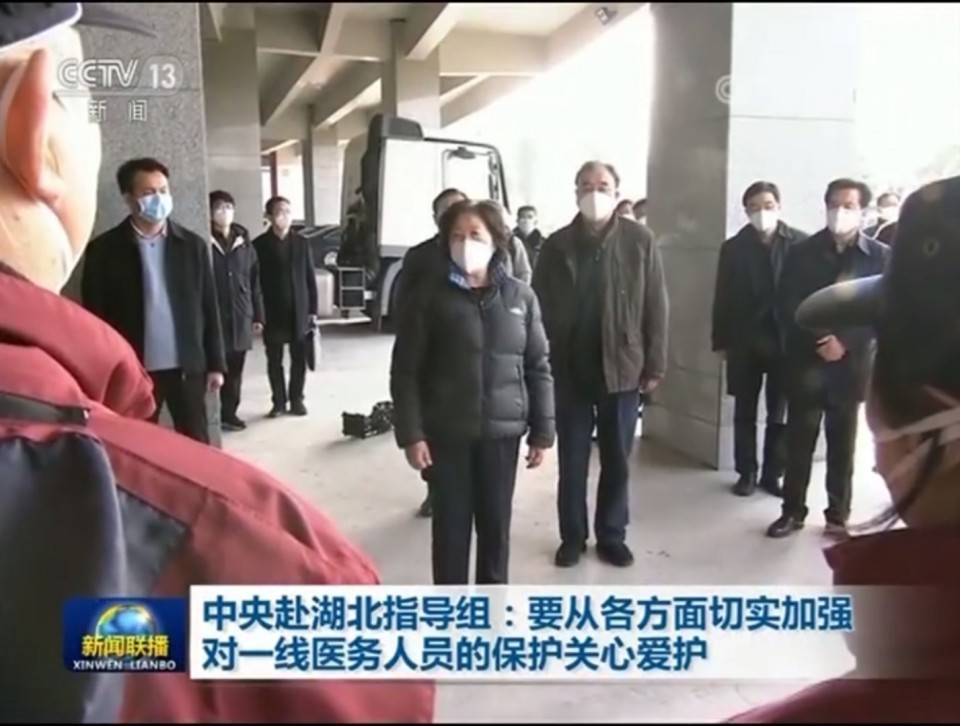 2月21日下午3时,在武汉体育中心方舱医院,中共中央政治局委员、国务院副总理孙春兰率中央指导组看望和慰问了包括我院第四批(安徽省第三批)支援湖北医疗队在内的白衣战士,并通过视频连线和舱内的我省医护人员进行了交谈。