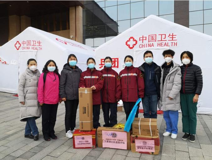 2月22日,我院第五批支援湖北医疗队在领队高新院区副院长张泓、临时党支部书记李永怀的带领下,看望了我院前四批医疗队员,向他们转达了医院的关心和问候,并送去了医疗物资和生活用品,让奋战在一线的医护人员备受鼓舞。作为我院支援湖北人数最多的医疗队,自2月14日奔赴武汉以来,已收到医院送达的两批医疗物资和生活物资。为关怀关爱一线医务人员,共同努力打赢防疫阻击战,按照医院的要求,第五批医疗队利用工作间隙,专程看望我院前四批支援湖北医疗队员,感染专家马红秋(第一批)、心脏大血管外科ICU护士长陈红等(第二批)、高新院区内科ICU主管护士陈凤娇等(第三批)和放疗科副主作医师吴齐兵(第四批)。同事们纷纷表示,一定不辱使命,展现安医人的医技医德,为打赢疫情攻坚战贡献安徽力量。