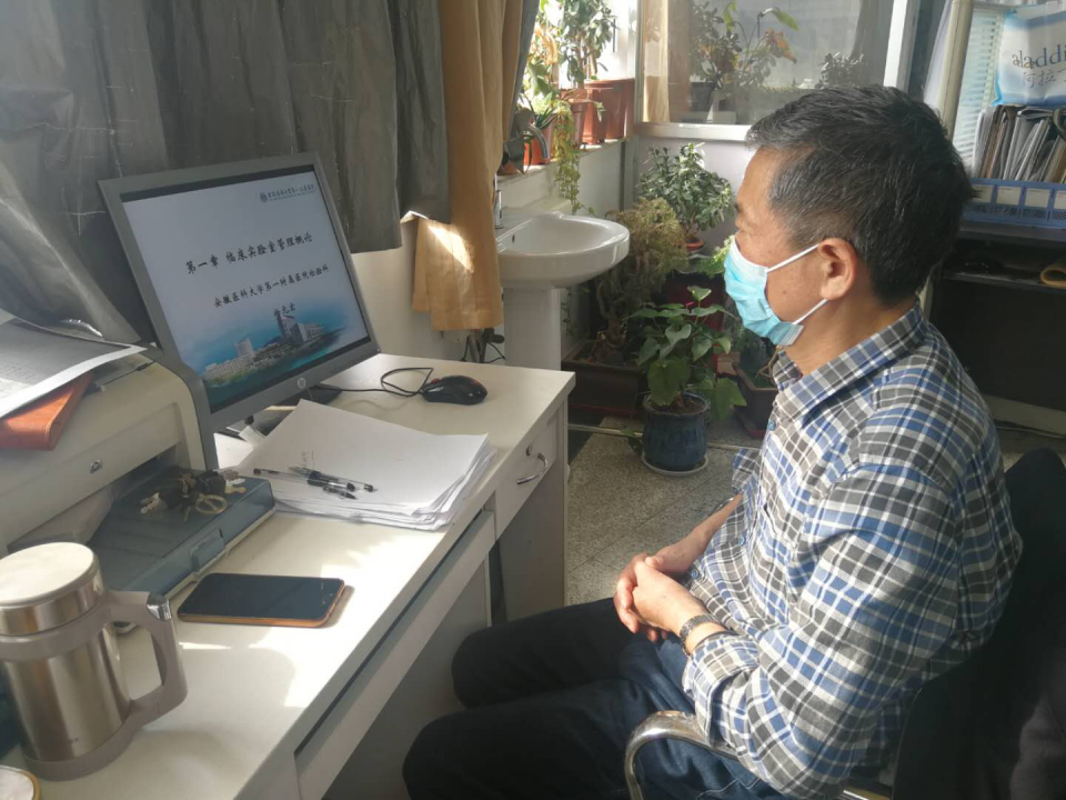 我院广大医护员工一直奋战在抗击新冠肺炎疫情的第一线,这其中有许多还承担教学任务的临床医生。白天或许还穿着密闭不透气的防护服忙碌在发热门诊、隔离病房,组织参与新冠肺炎患者的救治,晚上又要坐在书桌边、电脑旁查阅资料,认真备课,精心录制课件。检验科主任徐元宏在一线参与指导我院新冠肺炎病毒的采样和检测工作,作为一名资深的一线教学老师,他积极参与线上教学培训,认真完成教学工作,给年轻教师做出榜样。儿科范晓晨主任医师是全国知名的儿科教育教学专家,他主动克服网络教学的陌生感,认真组织儿科教研室开展线上教学,并提出许多合理化建议,在关键时刻发挥了安徽省模范教师的带头作用。呼吸内科尤青海副主任医师在出发武汉前的紧张准备中,挤出时间将自己的授课内容录制完毕,上传线上供学生学习。