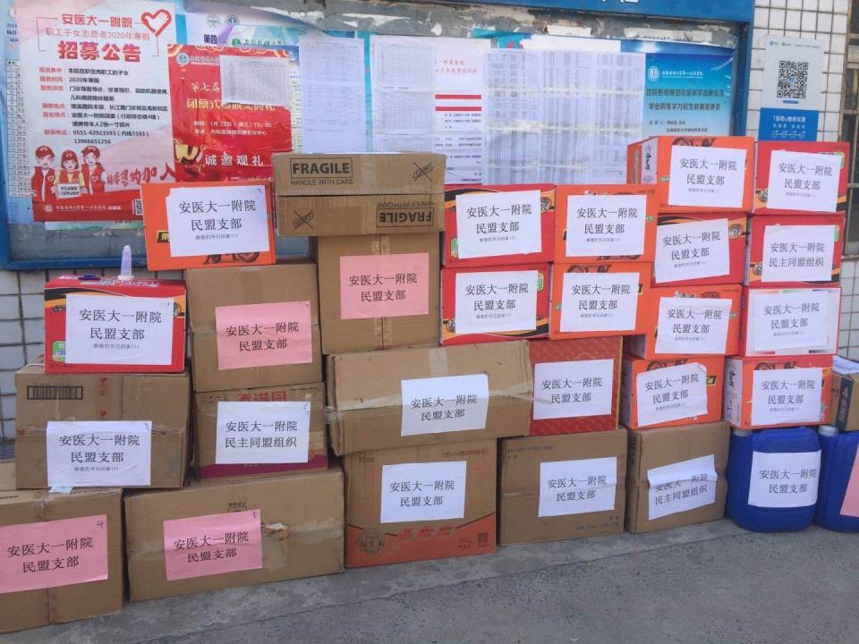援鄂医疗队在前方的战况牵动着我院民盟人的心。为有力支持前方抗疫,2月20日,民盟安医大一附院总支部盟员在民盟安医大基层副主委夏瑞祥的带领下,积极开展捐款捐物活动,并很快为武汉医疗队员筹集到了一批急需的的医疗用品和生活用品(约价值13000元),迅速发至援鄂医疗队手中。