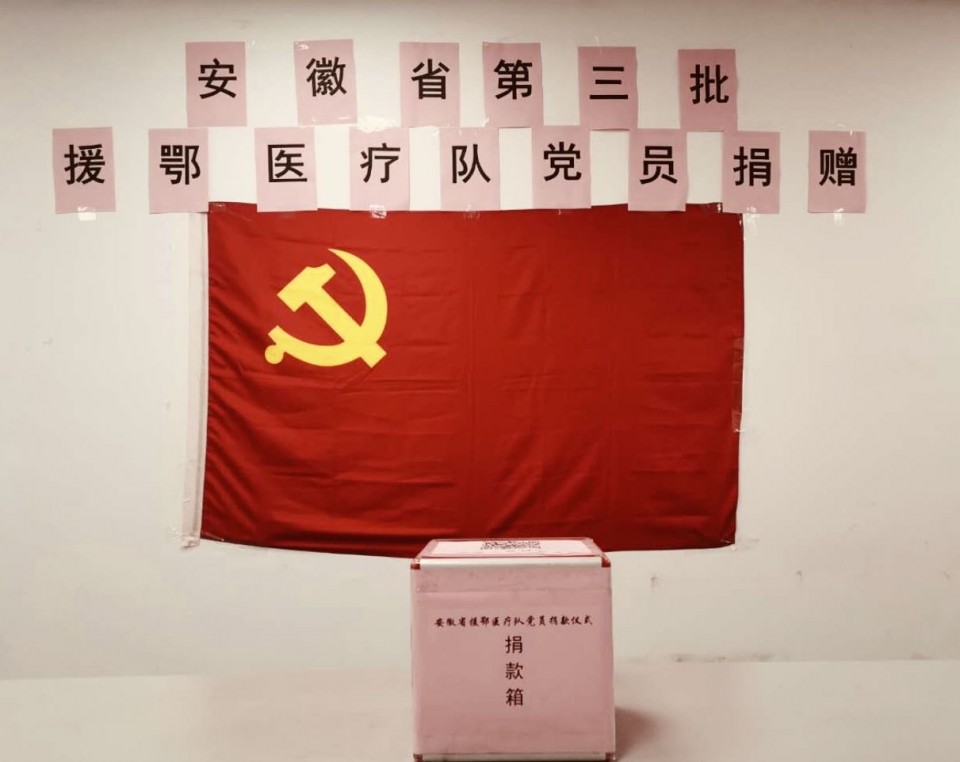 2月27 日上午,在武汉体育中心方舱医院,我院第四批(安徽省第三批)支援湖北医疗队积极响应党中央号召,纷纷伸出援手,踊跃为湖北新冠肺炎疫情防控工作捐款,以表达对湖北防疫工作的支持。 “国家兴亡,匹夫有责!危难之中见真情,当下,通过全国上下的共同努力,武汉、湖北、全国的疫情得到了明显的控制,然而,我们国家正处于困难时期,复工复产刚刚开始,我们郑重倡议:安徽省医疗队党员同志们与全国人民一道共克时艰,与疫情严重地区同胞守望相助!”医疗队领队、临时党支部书记吴齐兵宣读倡议书。